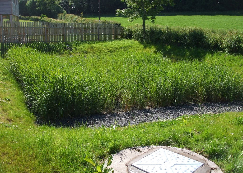 System: Septic tanks (x2) and a package pumping station followed by a reedbed